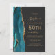Teal Blue Gold Agate Dark 50th Birthday Party Invitation