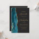 Teal Blue Gold Agate Dark QR Code Wedding Invitation