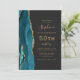 The left-hand edge of this elegant modern 50th birthday party invitation features a teal blue watercolor agate border trimmed with gold faux glitter. The customisable text combines gold-coloured handwriting, copperplate and italic fonts on a slate black background. Add RSVP instructions on the back of the card, along with a QR code guests can scan to respond online.