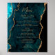 Teal Blue Gold Agate Wedding Table Menu Poster
