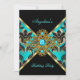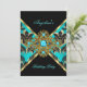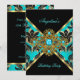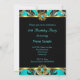 Teal Blue Gold Black Damask Floral Birthday Party Invitation