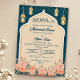 Teal Blue Gold Floral Islamic Muslim Wedding Invitation
