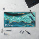 Teal Blue Gold Glitter Desk Mat with Custom Name