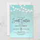 This girly and glamourous sweet sixteen birthday party invitation is perfect for the girly girl. It features glowing hanging light strands on top of faux printed gold sparkly glitter confetti on a teal blue and pastel blue abstract background. It's pretty, chic, modern, trendy, and cool; the perfect design for your daughter's special day.