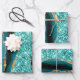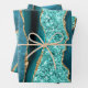 Teal Blue Gold Glitter Wrapping Paper Sheets