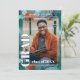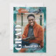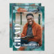Unique and trendy congratulations graduate announcement and celebration party invitation card, framed with a stylish teal blue, aqua turquoise green and brown coloured abstract brushstrokes background. With room to customise or personalise with a photo, the name of the graduate, class graduation year, high school, future college or university name, and celebration party event information. Let the family, friends and neighbours know there is a happy graduate ready to conquer the world, and invite everybody to come celebrate the happy event with you!