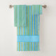 Teal, Blue, Green, and White Stripe Pattern Bath Towel Set