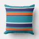 Teal Blue Green Burnt Sienna White Stripes Pattern Cushion