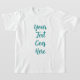 Front Design Add Image Text Name Modern Template Handwritten Script Kids Girls Basic White Teal Blue Green T-Shirt.