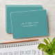 © Socialite Designs. Add a touch of timeless sophistication to your wedding mailings with this customisable teal RSVP return envelope. With a blue-green tone and text printed directly on the front, it’s ready to be personalised with your address for RSVP cards. Whether you're planning a romantic ceremony or an elegant soirée, this envelope completes your suite with grace and charm. Ideal for weddings, bridal showers, engagements, or any celebration that calls for thoughtful details.