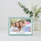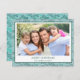 Teal Blue and Mint Green Leaf Pattern Simple Merry Christmas Holiday Photo Card. The picture and family name can be replaced on this simple and elegant Pastel Greenery Christmas Photo Card.