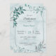 teal blue leaves floral geometric bridal shower invitation