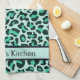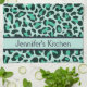 Teal Blue Leopard Print Retro Kitchen Towels Towel