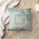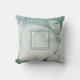 Teal Blue Marble Abstract Monogram Frame Cushion