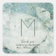 Teal Blue Marble Sparkle Monogram Square Sticker