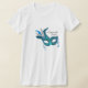 Teal blue feather mask masquerade party t-shirt. Add your details to the front and/or back by simply choosing the orange "Customise it!" button to begin adding your event details, font style, font size & colour, and wording. Please note - all of the shirts, cake toppers, cards and invitation designs you will find on Zazzle are printed graphics on flat paper stock with no actual jewels, bows, raised, embossed, or added parts or pieces.