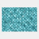 Stylish and unique wrapping paper sheets with a mermaid scales pattern in shades of teal blue, green, mint and aqua.