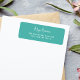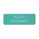 Modern teal blue return address label, with name in Signature Font paired with sans serif font.