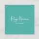 A sleek and stylish square business card featuring a solid and elegant TEAL blue background with your name or company name in an elegant signature script. Fully customisable to match your brand identity—edit the background colour, text, and logo effortlessly.