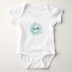 Cute Modern Watercolor Teal Blue Monogram Baby Boy Baby Bodysuit. A soft turquoise or teal blue watercolor backdrop provides the canvas for a cute and contemporary monogram, featuring initials and name. The monogram's black and white colour palette, composed of clean modern fonts mixed with a script font, exudes a simple yet fun charm. Whether you want to use the first name or last is up to you! You may find that your initial may sit lower or higher than it should once you change the letters. If you go into the edit tool, you can easily move these around. You may also find that lowercase or uppercase works better for the initial letter.