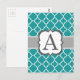 Teal Blue Monogram Letter A Quatrefoil Postcard
