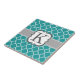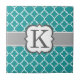 Teal Blue Monogram Letter K Quatrefoil Ceramic Tile