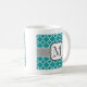 Teal Blue Monogram Letter M Quatrefoil Coffee Mug