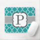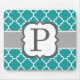 Teal Blue Monogram Letter P Quatrefoil Mouse Pad