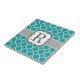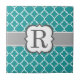 Teal Blue Monogram Letter R Quatrefoil Ceramic Tile