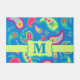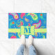 Welcome guests to your home with this colourful rug or mat personalised with your monogram initial. This design provides contemporary modern design and can be customised with your monogram initial. The bold colours of this trendy paisley design features a colourful teal blue background with a lime green strip and emblem for personalisation. Bright, fresh, modern paisleys make a beautiful artistic design of timeless paisleys. This Mod Paisley collection, designed by Phyllis Dobbs, uses the colours of teal, turquoise, lime green, wine, yellow, fuchsia and orange to create a fun and whimsey take on the traditional and popular paisley motif. This paisley design is original art. Fully customisable for personalisation.