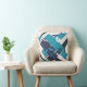 Teal Blue Navy on Off-white Diagonal Abstract Art Cushion