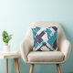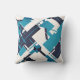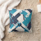 Teal Blue Navy on Off-white Diagonal Abstract Art Cushion