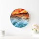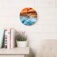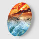 Teal Blue Ocean Surf Orange Sunset Large Clock