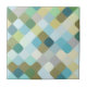 Teal Blue Ochre Mustard Yellow Round Squares Art Ceramic Tile