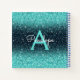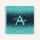 Teal Blue Ombre Glitter and Monogram Sketchbook Notebook