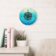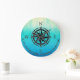 Teal Blue Ombre Sea Large Wall Clock. A nautical compass rose to keep your ocean bearings. Enjoy the stylish optical illusion effect of the ombre background. Keep the quote "In the waves of change we find our true direction" or add a name, sentiment, or monogram to customize. Be Custom, Be Unique, Be You in fabulous style!