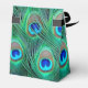 Elegant teal blue and vibrant emerald green, royal blue and teal blue peacock feather wedding favour boxes. You can add text in the font style, size and colour of your choice on this beautiful teal blue peacock wedding favour box.