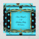 Teal Blue Polka Dots Gold Black Birthday Party Invitation