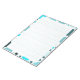 Many shades of teal blue polka dots create the edge of this lined notepad.