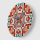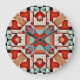 Teal Blue Red Rust Terra Cotta Tribal Art Pattern Large Clock