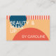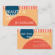 Beautiful artistic makeup artist business card. With contemporary teal blue, rust, orange and ivory off-white coloured round circles and stripes pattern on a blush pink background combined with a modern minimalist font. Click on 'Personalise' to find the template ready to be customised with your unique business name, profession and contact information, and text of your choice. This particular pretty and unique design was made for those who like bright colourful pastels and sophisticated classic geometric abstract designs.