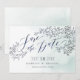 Elegant modern calligraphy save the date card with rustic floral design in teal blue colour on serenity dusty green watercolor background, great for modern rustic wedding, summer wedding or winter wedding.