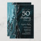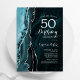 Teal Blue Silver Agate 50th Birthday Invitation