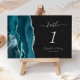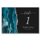 Teal Blue Silver Agate Dark Wedding Table Number