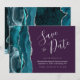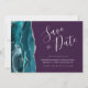 Teal Blue Silver Agate Purple Save the Date Card