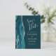 This elegant modern save the date postcard features a teal blue watercolor agate border trimmed with faux silver glitter. Easily customise the silver grey text on a dark teal background. The reverse side repeats the information, along with a customisable return address.