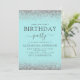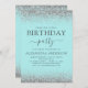 Teal Blue Silver Any Age Birthday Glitter Modern Invitation
