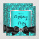 Teal Blue Silver Black Diamonds Birthday Party Invitation