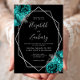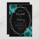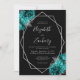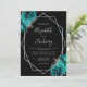 Teal Blue Silver Floral Black Wedding Invitation