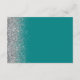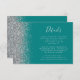 Teal Blue Silver Glitter Edge Wedding Details Enclosure Card